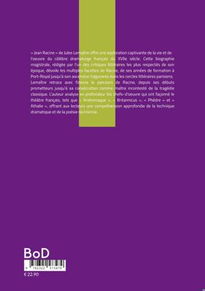 « Jean Racine » n'est pas seulement une biographie, c'est une véritable immersion dans le « Théâtre classique français » du Grand Siècle. Lemaître parvient à captiver aussi bien les spécialistes de littérature que les amateurs de théâtre, offrant une lecture enrichissante et accessible à tous ceux qui souhaitent découvrir ou redécouvrir l'un des plus grands auteurs de la littérature française.