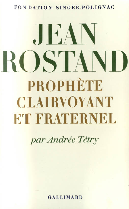 Une amitié quadragénaire liait Jean Rostand, "le solitaire de Ville-d'Avray", à l'auteur, qui rappelle la personnalité complexe de cet homme exceptionnel et tente de le faire revivre au travers de ses activités protéiformes. Il fut, tour à tour, le biologiste expérimentateur, le biologiste des anticipations, l'informateur de talent qui initie, le vulgarisateur populaire qui a su établir le dialogue avec tous les hommes, l'historien des sciences qui a révélé le profil de la biologie ; il fut aussi le moraliste aux quelque quatre mille maximes et aphorismes savoureusement ironiques, percutants, teintés de tendresse désabusée, l'écrivain remarquable doublé d'un poète sensible, le biologiste et l'agnostique anxieux, le polémiste redoutable, l'accusateur lucide des inégalités sociales, le combattant infatigable en faveur de la paix, le dénonciateur de l'atome militaire ; il fut enfin le tribun à la voix vibrante, à l'éloquence fougueuse, parfois emphatique ou féroce, qui défend les idéaux les plus nobles. Son oeuvre considérable a exercé une profonde influence sur la pensée de plusieurs générations et notamment sur la jeunesse. Les sujets privilégiés de Jean Rostand font l'objet d'une analyse objective ; elle a en outre le mérite d'être complétée par un rapide examen des recherches actuelles qui prolongent les travaux rostandiens et mettent en évidence l'évolution des idées et les pratiques qui en découlent. L'oeuvre de jeunesse, douze livres parus de 1919 à 1931, épuisés pour la plupart, mérite une attention particulière. A. Tétry en présente un exposé détaillé ; il révèle un auteur satirique dénonçant impitoyablement les inégalités sociales et décrivant les vices, les ridicules, les injustices de nos sociétés ; les observations accusatrices éclairent les positions militantes prises par Jean Rostand au soir de sa vie.