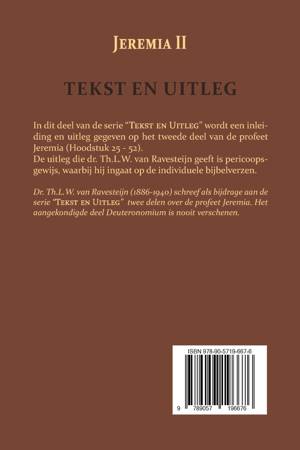Dr. Th.L.W. van Ravesteijn (1886-1940) schreef als bijdrage aan de serie “Tekst en Uitleg” twee delen over de profeet Jeremia. Het aangekondigde deel Deuteronomium is nooit verschenen.