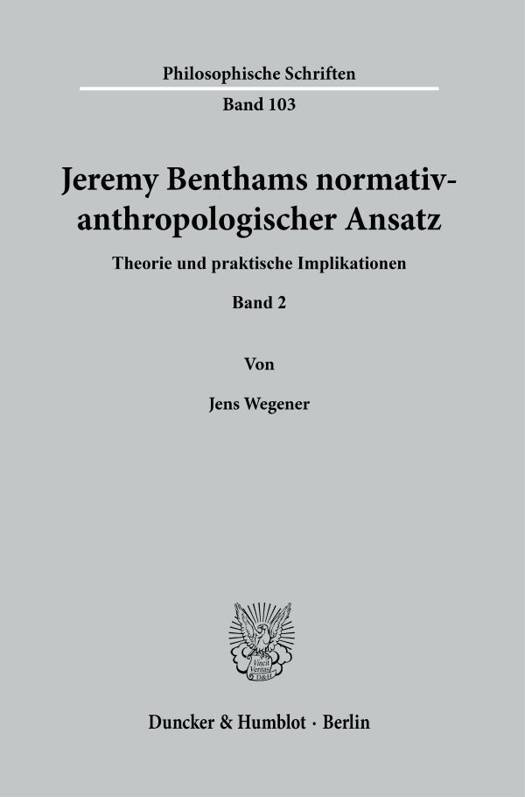 Als Fortsetzung und praxisorientierte Erganzung des ersten Bandes befasst sich der vorliegende Text mit Benthams Projekten der Einfuhrung eines auf permanenter Uberwachung beruhenden, modernen Gefangniskonzepts (Panoptikon), der Einrichtung eines England und Wales umspannenden Netzes von privat gefuhrten Arbeitshausern zur Losung der Armutsproblematik, der Ausloschung wenigstens der organisierten Religion als gesellschaftlichen Einflussfaktor, der rechtlichen und moralischen Freigabe jeglicher konsensualer Sexualpraktiken und Methoden der Geburtenkontrolle, sowie der pragmatischeren Handhabung des Todes, verbunden mit der nutzlichen Verwendung von Leichen. Die Arbeit zeigt eine in jeder Hinsicht konsequente Umsetzung des principle of utility und kann zur Revision auf Unkenntnis beruhender Fehlurteile uber Benthams Beitrag zur Geistesgeschichte, aber auch zur Diskreditierung des benthamschen Werks und, in einigen wenigen Fallen, zu dessen Rehabilitierung herangezogen werden.