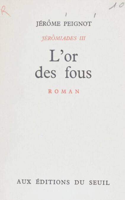 Tous les courriers du cœur, selon Jérôme Peignot, signifient : “Je ne l’aime pas. Elle (ou il) ne m’aime pas. Que faire ?” En publiant ses “Jérômiades III”, il choisit honnêtement, cruellement, de nous donner ce qui pourra paraître comme le contraire d’un “roman d’amour”. Pourquoi “L’or des fous” ? Parce que cette pyrite de fer, qui brille au soleil, fascinait les Incas. Ils la prenaient pour de l’or. Ils inventaient l’or. De même, l’amant qui regarde les larmes couler, ce malade, devient son propre médecin. Il lui semble qu’il va inventer l’ordonnance idéale : celle d’un bonheur lucide.