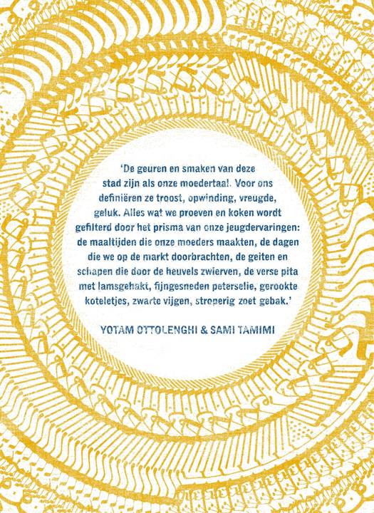 'De geuren en smaken van deze stad zijn als onze moedertaal. Voor ons definiëren ze troost, opwinding, vreugde, geluk. Alles wat we proeven en koken wordt gefilterd door het prisma van onze jeugdervaringen: de maaltijden die onze moeders maakten, de dagen die we op de markt doorbrachten, de geiten en schapen die door de heuvels zwierven, de verse pita met lamsgehakt, fijngesneden peterselie, gerookte koteletjes, zwarte vijgen, stroperig zoet gebak.'