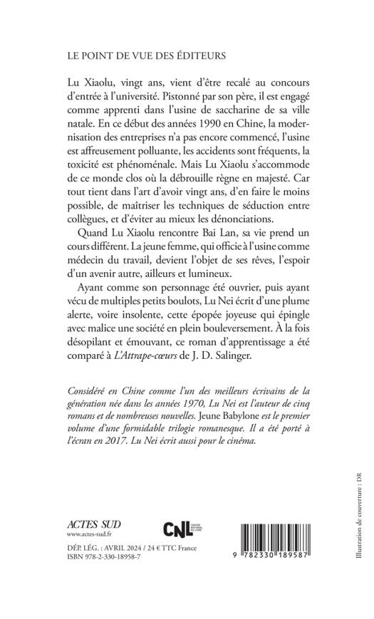 Ayant comme son personnage été ouvrier, puis ayant vécu de multiples petits boulots, Lu Nei écrit d'une plume alerte, voire insolente, cette épopée joyeuse qui épingle avec malice une société en plein bouleversement. À la fois désopilant et émouvant, ce roman d'ap prentissage a été comparé à L'Attrape-coeurs de J. D. Salinger.