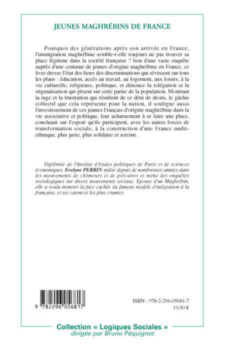 Issue d'une vaste enquête auprès d'une centaine de jeunes d'origine maghrébine en France, cette étude fait un état des lieux des discriminations qui sévissent sur tous les plans : éducation, accès au travail, au logement, aux loisirs, à la vie culturelle, religieuse, politique, et dénonce la relégation et la stigmatisation qui pèsent sur cette partie de la population.