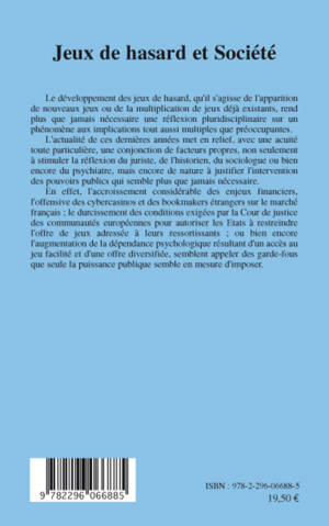 Le développement des jeux de hasard rend nécessaire une réflexion pluridisciplinaire sur ce phénomène. Plusieurs points appellent des garde-fous que seule la puissance publique pourrait imposer : l'accroissement des enjeux financiers, l'offensive des cybercasinos et des bookmakers étrangers ; le durcissement des conditions exigées par la Cour de justice des communautés européennes pour autoriser les Etats à restreindre l'offre de jeux dans leur pays ; l'augmentation de la dépendance psychologique.