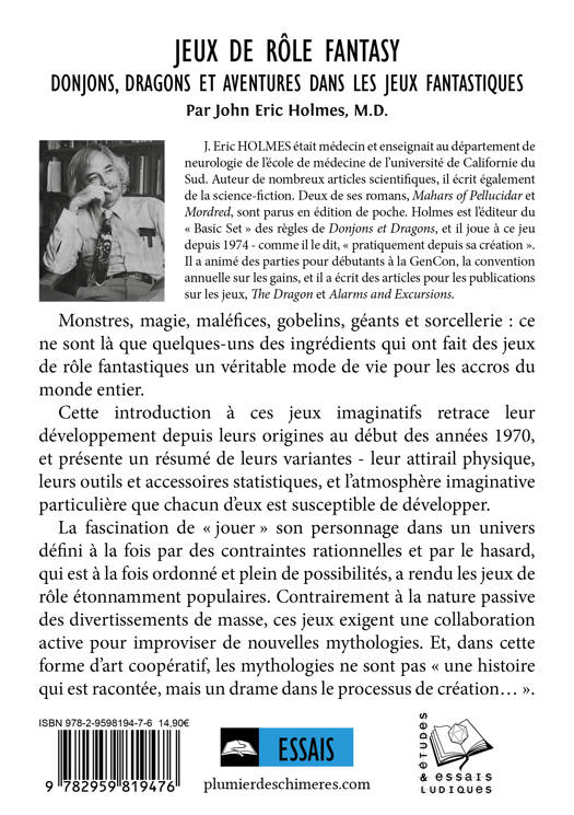 Monstres, magie, maléfices, gobelins, géants et sorcellerie : ce ne sont là que quelques-uns des ingrédients qui ont fait des jeux de rôle fantastiques un véritable mode de vie pour les accros du monde entier. Cette introduction à ces jeux imaginatifs retrace leur développement depuis leurs origines au début des années 1970, et présente un résumé de leurs variantes - leur attirail physique, leurs outils et accessoires statistiques, et l’atmosphère imaginative particulière que chacun d’eux est susceptible de développer. La fascination de « jouer » son personnage dans un univers défini à la fois par des contraintes rationnelles et par le hasard, qui est à la fois ordonné et plein de possibilités, a rendu les jeux de rôle étonnamment populaires. Contrairement à la nature passive des divertissements de masse, ces jeux exigent une collaboration active pour improviser de nouvelles mythologies. Et, dans cette forme d’art coopératif, les mythologies ne sont pas « une histoire qui est racontée, mais un drame dans le processus de création… ».