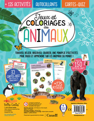 Une panoplie d’informations et d’activités ludiques sur 128 espèces classées par continent. Ce cahier géant contient des défis amusants à tracer, dessiner, colorier et compléter avec des autocollants. Un jeu avec des cartes éclairs est également inclus pour des heures de divertissement!