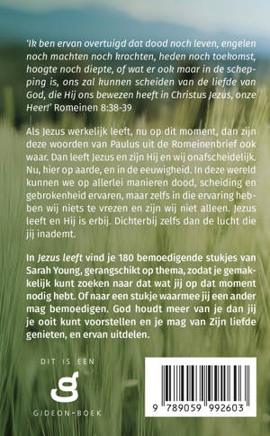 In Jezus leeft vind je 180 bemoedigende stukjes van Sarah Young, gerangschikt op thema, zodat je gemakkelijk kunt zoeken naar dat wat jij op dat moment nodig hebt. Of naar een stukje waarmee jij een ander mag bemoedigen. God houdt meer van je dan jij je ooit kunt voorstellen en je mag van Zijn liefde genieten, en ervan uitdelen.