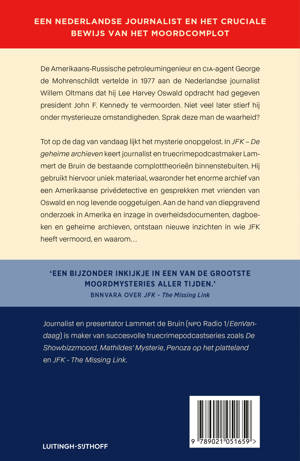 Tot op de dag van vandaag houdt het mysterie de gemoederen bezig. Dit is een diepgravend journalistiek onderzoek naar de meest mysterieuze politieke moord van de 20e eeuw en de cruciale Nederlandse link in het dossier met voor het boek uniek materiaal uit een archief van een privédetective, gesprekken met de minnares van Oswald, en nog levende ooggetuigen…