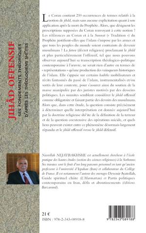Le Coran contient 210 occurrences de termes relatifs à la notion de jihâd, mais sans aucune explicitation quant à son application après la mort du Prophète. Alors, que désignent les prescriptions supposées du Coran renvoyant à cette notion ? Les sunnites semblent considérer le jihâd offensif comme obligatoire et faisant partie des devoirs des musulmans. Dans cette étude, la question consiste à déterminer quelle interprétation est donnée aujourd'hui par la doctrine religieuse shî'ite de la définition de la terreur et de la question coextensive des opérations suicide, et quels liens peuvent exister entre ce phénomène désormais largement répandu et le jihâd offensif versus le jihâd défensif.