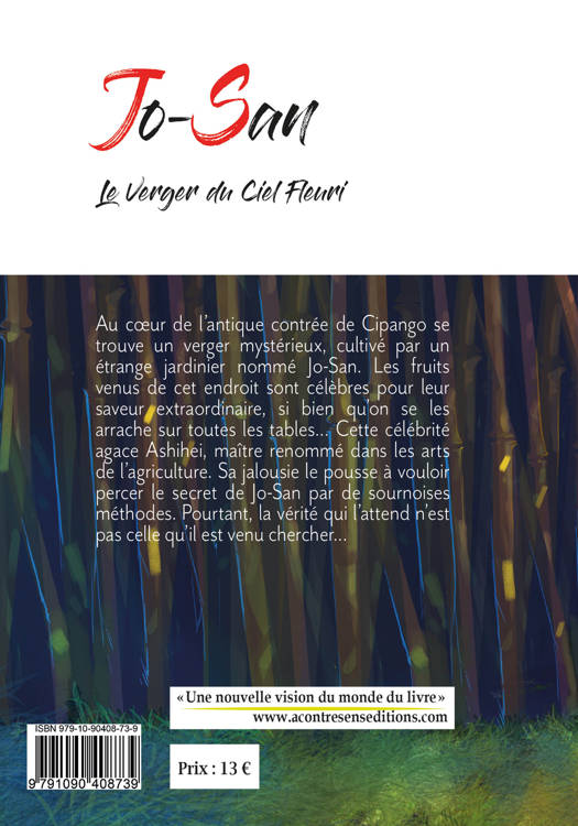 Argumentaire : Jo-San, le Jardin du ciel fleuri nous entraîne en Cipango, antique pays du soleil levant où se croisent samouraïs et créatures fantastiques. On y découvre un fabuleux verger, dans lequel évoluent des personnages haut en couleur. Cet ouvrage, à la fois drôle, tendre, et plein de rebondissements, offre une lecture aisée sans pour autant renoncer à un style travaillé et riche en vocabulaire. Outre les qualités attractives de cette aventure – on se demande vraiment comment elle va se terminer – ce roman nous invite, d’une façon originale, à repenser notre rapport à la nature et aux êtres qui nous entourent. Moment de philosophie stimulante, rehaussé par de fraîches illustrations, c’est un récit parfait pour les amateurs de Japon, de belles valeurs et de dépaysement !