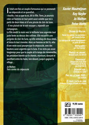Un dossier consacré à Jo Walton, autrice britannique de science-fiction et de fantasy. Sa carrière littéraire débute par une trilogie réinterprétant la geste arthurienne. Elle publie ensuite Les griffes et les crocs, un pastiche de roman victorien avec des dragons, pour lequel elle reçoit le Prix World Fantasy, puis la série Subtil changement, mêlant roman policier et uchronie.