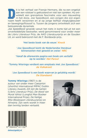 Joe Speedboot is een roman over liefde en rivaliteit, over een verlosser zonder belofte en een heroïsche odyssee. Het toont het lot van nieuwkomers in een Nederlands dorp, waar de last van het onverwerkte verleden op de inwoners drukt. De tragikomische maalstroom van gebeurtenissen geeft het ingeslapen dorp een onverwachte dynamiek waar het niet meer van zal herstellen. Tommy Wieringa schreef met Joe Speedboot een gedreven, aanstekelijke ontwikkelingsroman, met een hoofdrol voor de mateloze verbeeldingskracht van één man. Fransje Hermans, de verteller van het verhaal, is na een ongeluk invalide geraakt en heeft voorgoed zijn spraakvermogen verloren. Hij is de zelfbenoemde chroniqueur van het dorp Lomark. Zijn fascinatie voor de nieuweling Joe Speedboot is grenzeloos: Joe Speedboot, de jongen die zijn eigen naam gekozen heeft en op zijn vijftiende al bommenlegger, vliegtuigbouwer en bewegingsfilosoof is. Nauwgezet observeert Fransje hoe nog een nieuwkomer de natuurlijke orde van het dorp komt verstoren: Joe's stiefvader Papa Afrika, een zachtaardige Nubiër met gazellenogen die een kleine scheepswerf begint op de oever van de Rijn. Dan verschijnt de geheimzinnige Picolien Jane, een beeldschone Zuid-Afrikaanse, aan wie Fransje zijn kronieken opdraagt en voor wie levenslange vriendschappen op het spel worden gezet. In haar komen alle verhalen samen, met noodlottige gevolgen. Op originele wijze en met speels vernuft, toont Tommy Wieringa de loop van een geschiedenis, waarin niemand aan zijn bestemming ontkomt.