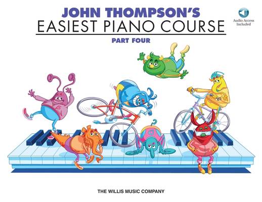 (Willis). Part 4 of a comprehensive step-by-step course specifically designed to suit the needs of all children beginning the piano. Includes: characters and illustrations * writing exercises * sight reading drills * review work * accompaniments * and more. This version includes online audio. The audio is accessed online using the unique code inside each book and can be streamed or downloaded. The audio files include PLAYBACK+, a multi-functional audio player that allows you to slow down audio without changing pitch, set loop points, change keys, and pan left or right.