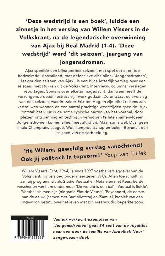 In Jongensdromen, het gouden seizoen van Ajax volgt verslaggever Willem Vissers van de Volkskrant de opkomst van het nieuwe Ajax op de voet. In het boek zijn de belangrijkste wedstrijdverslagen, reportages, interviews en columns chronologisch afgedrukt, waardoor een compleet beeld ontstaat van het verloop van het seizoen, het opportunisme en de euforie.