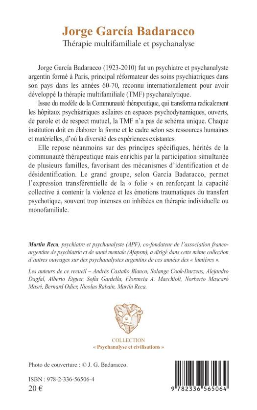 Jorge García Badaracco (1923-2010) fut un psychiatre et psychanalyste argentin formé à Paris, principal réformateur des soins psychiatriques dans son pays dans les années 60-70, reconnu internationalement pour avoir développé la thérapie multifamiliale (TMF) psychanalytique. Issue du modèle de la Communauté thérapeutique, qui transforma radicalement les hôpitaux psychiatriques asilaires en espaces psychodynamiques, ouverts, de parole et de respect mutuel, la TMF n'a pas de schéma unique. Chaque institution doit en élaborer la forme et le cadre selon ses ressources humaines et matérielles, d'où la diversité des expériences existantes. Elle repose néanmoins sur des principes spécifiques, hérités de la communauté thérapeutique mais enrichis par la participation simultanée de plusieurs familles, favorisant des mécanismes d'identification et de désidentification. Le grand groupe, selon García Badaracco, permet l'expression transférentielle de la folie en renforçant la capacité collective à contenir la violence et les émotions traumatiques du transfert psychotique, souvent trop intenses ou inhibées en thérapie individuelle ou monofamiliale.