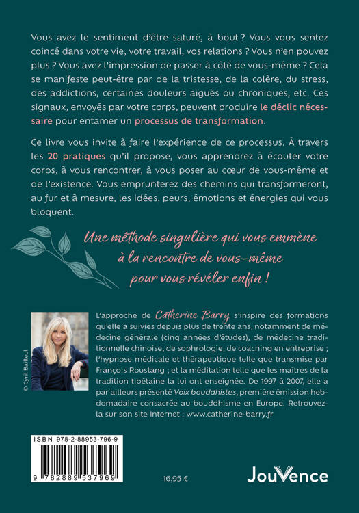 Vous avez le sentiment d’être saturé, à bout ? Vous vous sentez coincé dans votre vie, votre travail, vos relations ? Vous n’en pouvez plus ? Vous avez l’impression de passer à côté de vous-même ? Cela se manifeste peut-être par de la tristesse, de la colère, du stress, des addictions, certaines douleurs aiguës ou chroniques, etc. Ces signaux, envoyés par votre corps, peuvent produire le déclic nécessaire pour entamer un processus de transformation.