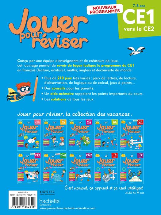 Conçu par une équipe d’enseignants et de créateurs de jeux, cet ouvrage permet de revoir de façon ludique le programme du CE1 en français, maths, anglais et découverte du monde.