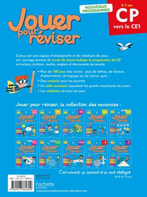 Conçu par une équipe d’enseignants et de créateurs de jeux, cet ouvrage permet de revoir de façon ludique le programme du CP en lecture, écriture, maths, anglais et découverte du monde.
