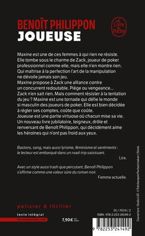 Joueuse est une partie de poker virtuose où chacun mise sa vie. Un nouveau livre jubilatoire, teigneux, drôle et renversant de Benoît Philippon, qui décidément aime les héroïnes qui n’ont pas froid aux yeux.