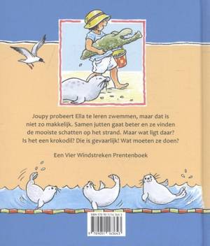Joupy probeert Ella te leren zwemmen, maar dat is niet zo makkelijk. Samen jutten gaat beter en ze vinden de mooiste schatten op het strand. Maar wat ligt daar? Is het een krokodil? Die is gevaarlijk! Wat moeten ze doen?
