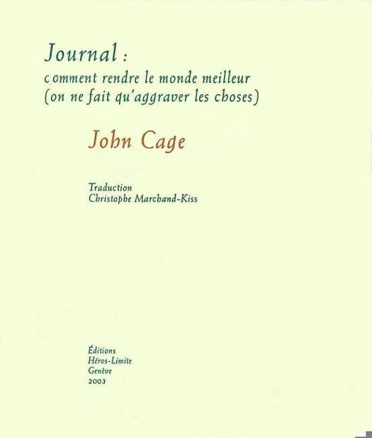 Dans son Journal, John Cage laisse libre cours au tracé de sa pensée, les propositions se juxtaposent, zigzaguent. Il opère dans la césure et la discontinuité. Le Journalse compose de huit parties qui couvrent différentes périodes (1965-1982) de la vie du compositeur. En 1991, John Cage en donne une lecture qui sera enregistrée puis éditée sous la forme de huit CD. Anecdotes et récits philosophiques, le Journaldépasse de très loin le cadre musical. Tout comme celle de Satie, la voix de John Cage s’adresse avec finesse et ironie aux lecteurs. Pour autant que la lecture soit elle-même « invention ».