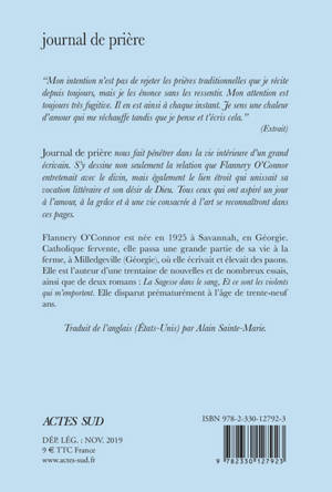 «Journal de prière» nous fait pénétrer dans la vie intérieure d'un grand écrivain. S'y dessine non seulement la relation que Flannery O'Connor entretenait avec le divin, mais également le lien étroit qui unissait sa vocation littéraire et son désir de Dieu. Tous ceux qui ont aspiré un jour à l'amour, à la grâce et à une vie consacrée à l'art se reconnaîtront dans ces pages.