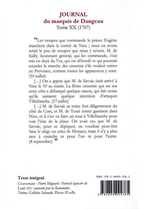 [...] M. de Savoie se retire fort diligemment du côté de Coni, et M. de Tessé remet garnison dans Nice, et il s'en va faire un tour à Villefranche pour voir l'état de la place. On avait cru que M. de Savoie, pour se dépiquer, en voudrait peut-être faire le siège ou celui de Monaco, mais il n'y a plus rien à craindre ni pour l'un ni pour l'autre. (8 septembre) »