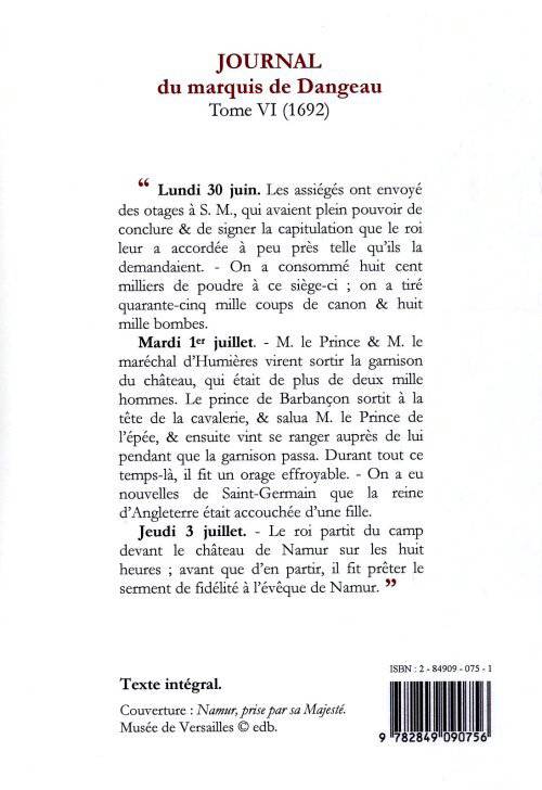 Jeudi 3 juillet. - Le roi partit du camp devant le château de Namur sur les huit heures; avant que d'en partir, il fit prêter le serment de fidélité à l'évêque de Namur.»