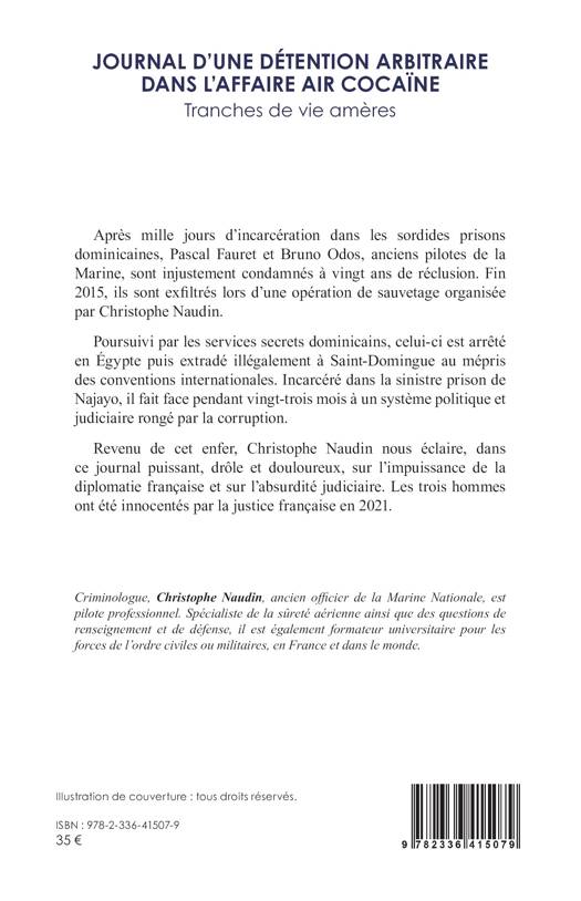 Après mille jours d’incarcération dans les sordides prisons dominicaines, Pascal Fauret et Bruno Odos, anciens pilotes de la marine, sont injustement condamnés à vingt ans de réclusion. Fin 2015, ils sont exfiltrés lors d’une opération de sauvetage organisée par Christophe Naudin. Poursuivi par les services secrets dominicains, celui-ci est arrêté en Égypte puis extradé illégalement à Saint-Domingue au mépris des conventions internationales. Incarcéré dans la sinistre prison de Najayo, il fait face pendant vingt-trois mois à un système politique et judiciaire rongé par la corruption. Revenu de cet enfer, Christophe Naudin nous éclaire, dans ce journal puissant, drôle et douloureux, sur l’impuissance de la diplomatie française et sur l’absurdité judiciaire. Les trois hommes ont été innocentés par la justice française en 2021.