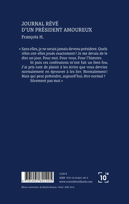 Ce Journal rêvé d'un président amoureux aurait pu s'appeler L'incroyable roman du quinquennat. Ce qui a fasciné les auteurs, réunis sous le pseudonyme de François H, c'est la puissance romanesque de leur héros : un président qui, bien que revendiquant l'absolue séparation des vies publiques et privées, a porté leur confusion à un niveau rarement atteint. C'est cette contradiction, et le refus de l'assumer, qui leur est apparue comme le principal ressort du personnage et donc d'un grand nombre de ses choix privés et publics. Loin d'être un livre politique, il s'agit avant tout d'un portrait ou, plus exactement, d'un autoportrait : les auteurs ont en effet préféré laisser leur héros se raconter lui-même.