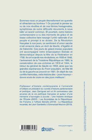 De la Révolution française à nos jours, une histoire des moments de bonheur collectif et d'union sacrée qui ont fait revivre ce sentiment d'unité issu de notre histoire commune et de notre récit national, par Jean Garrigues, historien très médiatique de la vie politique française et auteur de «L'Histoire érotique de l'Élysée» (2019) chez Payot.