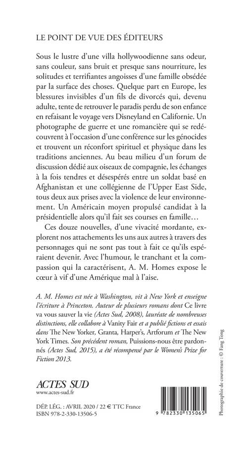 Ces douze nouvelles, d'une vivacité mordante, explorent nos attachements les uns aux autres à travers des personnages qui ne sont pas tout à fait ce qu'ils espéraient devenir. Avec l'humour, le tranchant et la compassion qui la caractérisent, A. M. Homes expose le coeur à vif d'une Amérique mal à l'aise.