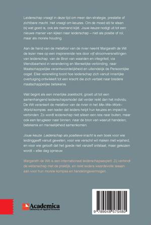 Aan de hand van de metafoor van de rivier neemt Margareth de Wit de lezer mee op een inspirerende reis door vijf stroomversnellingen van leiderschap: van de Bron van waarden en integriteit, via Wendbaarheid in verandering en Menselijke verbinding, naar Maatschappelijke verantwoordelijkheid en uiteindelijk de Persoonlijke oogst. Elke versnelling toont hoe leiderschap zich vanuit innerlijke overtuiging ontwikkelt tot een kracht die zich vertakt naar bredere maatschappelijke betekenis.