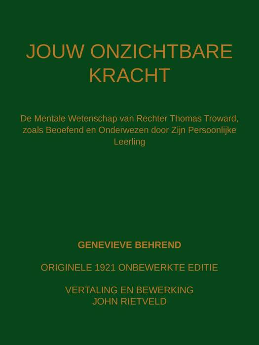 JOUW ONZICHTBARE KRACHT is een tijdloze klassieker, nu opnieuw gepresenteerd in deze heruitgave van het originele werk uit 1921, onveranderd en onaangetast. In dit meesterwerk onthult Genevieve Behrend, de enige persoonlijke leerling van de grote Thomas Troward, de kernprincipes van mentale wetenschap en visualisatie, waarmee talloze mensen hun leven hebben getransformeerd.