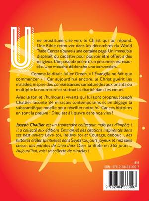Une prostituée qui crie vers le Christ qui lui répond, la Bible retrouvée dans les décombres du World Trade Center ouverte à une certaine page, un immeuble qui disparait du cadastre pour pouvoir être offert à des religieux, l’impossible prière d’un prisonnier exaucée, une mouche à l’origine d’une conversion… Comme le disait Julien Green, « l’Évangile ne fait que commencer », et aujourd’hui encore le Christ guérit les malades, inspire des connaissances surnaturelles aux priants, multiplie la nourriture et surtout la charité dans les cœurs… Ces 80 histoires, racontées avec le ton et l’humour si vivants propres à leur auteur, en sont la preuve : Dieu est l’œuvre dans nos vies !