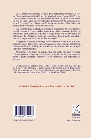 Cette histoire de la pratique jubilaire et du culte marial examine leur devenir dans la longue durée, au Puy-en-Velay en particulier et dans l'ensemble du monde chrétien.