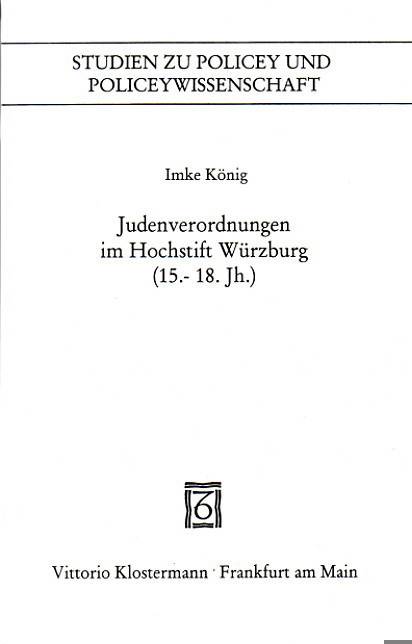 Seit dem ausgehenden Mittelalter wurde die rechtliche Stellung der Juden im Alten Reich zunehmend durch Verordnungen geprägt, die jeder Territorialherr für seinen Herrschaftsbereich erließ. Sie gehörten einem neuen Normtypus an, der sich in Abkehr vom mittelalterlichen Rechtsdenken durch einseitige Rechtsetzung der Obrigkeit auszeichnete. Mit dem Ziel der Herstellung und Bewahrung einer guten Ordnung des Gemeinwesens griffen solche "Policeygesetze" in fast alle Gesellschafts- und Lebensbereiche, also auch in die Verhältnisse der Judenschaften, regelnd ein.Das Hochstift Würzburg war eines der größten geistlichen Fürstentümer Deutschlands und stellte auch nach weltlichen Anschauungen eine ansehnliche Territorialmacht dar. Diese Arbeit befasst sich mit den Judenverordnungen, die im Rahmen der Policeygesetzgebung im Territorium des Hochstifts Würzburg in der Frühen Neuzeit ergangen sind.