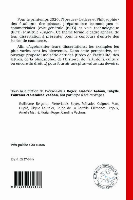 Pour le printemps 2026, l’épreuve « Lettres et Philosophie » des étudiants des classes préparatoires économiques et commerciales (voie générale (ECG) et voie technologique (ECT)) s’intitule « Juger ». Ce thème forme le cadre général de leur dissertation à présenter pour le concours d’entrée des écoles de commerce.