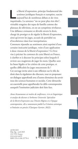 La liberté d'expression, principe fondamental des systèmes juridiques français et européen, suscite aujourd'hui de nombreux débats et de vives inquiétudes. La sentence "on ne peut plus rien dire", véritable rengaine des repas de famille comme des plateaux de télévision, en est un symptôme révélateur. Une défiance croissante se dévoile envers le droit, chargé de protéger et de réguler la liberté d'expression, ainsi qu'envers les juges, accusés de partialité ou d'incohérence dans leur interprétation. Comment répondre au sentiment ainsi exprimé d'une certaine insécurité juridique, voire d'une application à deux vitesses de la liberté d'expression ? Ce livre vise à préciser les contours de cette liberté en France, à clarifier et à discuter les principes selon lesquels il revient aux magistrats de juger les mots. Quelles sont les bases légales et les critères de cette pratique, et quelles difficultés les juges rencontrent-ils ? Cet ouvrage invite ainsi à une réflexion sur le rôle du droit dans la régulation des discours, tout en proposant un dialogue approfondi avec d'autres domaines du savoir issus des sciences humaines et sociales. Cette démarche est essentielle pour appréhender les défis contemporains auxquels l'institution judiciaire doit faire face.