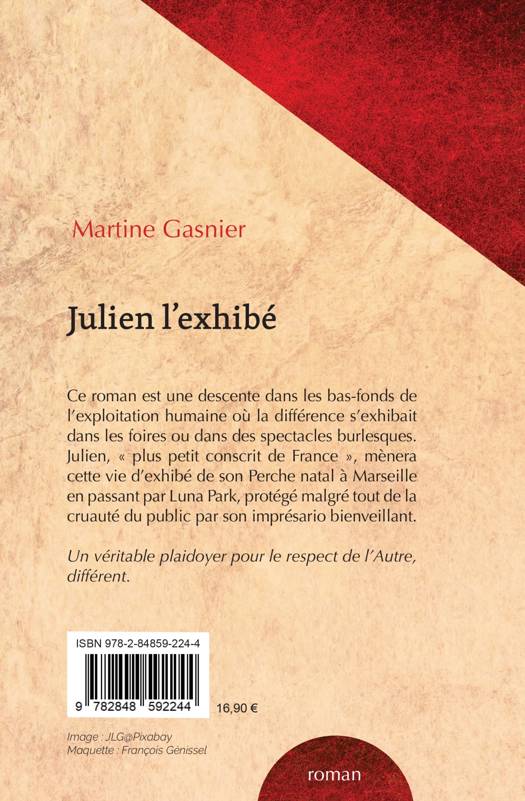 Ce roman est une descente dans les bas-fonds de l'exploitation humaine où la différence s'exhibait dans les foires ou dans des spectacles burlesques. Julien, « plus petit conscrit de France », mènera cette vie d'exhibé de son Perche natal à Marseille en passant par Luna Park, protégé malgré tout de la cruauté du public par son imprésario bienveillant. Un véritable plaidoyer pour le respect de l'Autre, différent.