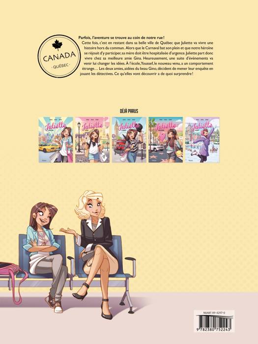 En février, Juliette est très heureuse de rester à Québec où elle vit, afin de profiter des festivités du Carnaval avec Gina et Gino, ses meilleurs amis. Hélas, sa mère est hospitalisée d’urgence à la suite d’un malaise. Heureusement, la maman de Gina accueille Juliette chez elle. Les deux amies se réjouissent de vivre comme des sœurs!