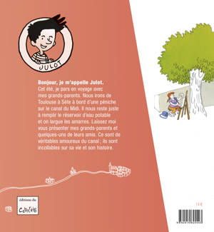 Julot monte sur la péniche de ses grands- parents et avec eux, part sur le canal du Midi de Toulouse jusqu’à l’étang de Thau. Lors de chaque halte, il découvre et observe: ouvrages d’art, vie passée des bateliers et des éclusiers, faune et flore... Les informations sont données par des questions-réponses en direction des adultes qui accompagnent Julot. En bas de chaque page se trouve le journal de bord de Julot avec ses remarques personnelles.
