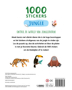 Maak kennis met allerlei dieren die in de hoge boomtoppen en het donkere struikgewas van de jungle te vinden zijn. Los de puzzels op, doe de activiteiten en kleur de platen in met je favoriete kleuren. Gebruik de 1000 stickers achterin om de bladzijden af te maken!