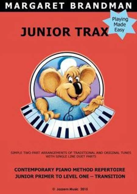 Junior Trax is a gently graded set of fifteen tuneful songs along with specially devised preparatory exercises. Designed for use following the initial stages of learning using the interval approach in Margaret Brandman's Junior Primer, every arrangement develops the pianist's ability to both co-ordinate the hands and to gain hand independence. Arranged for two balanced parts using easy key signatures and rhythms, the pieces foster music speed-reading and learning. To simplify the learning process particular attention has been paid to the proportional music layout and fingering. Lyrics are included above the music. The songs in the book, amusing title illustrations featuring Dexter the Koala and the included single-line duet parts will provide hours of enjoyment for novice pianists.