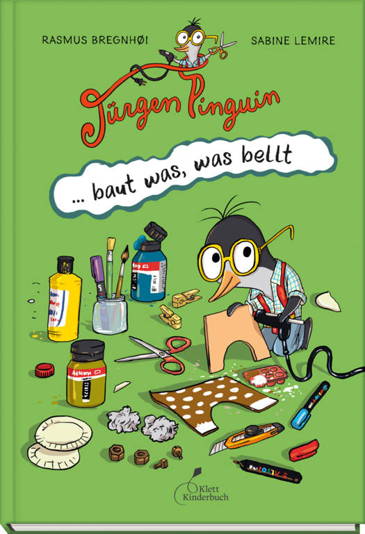 "Jürgen Pinguin hat einen Schnabel und zwei Flügel-Flossen. Mit dem Schnabel erzählt er Geschichten und mit den Flügel-Flossen baut er gerne Sachen."