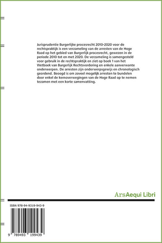 Jurisprudentie Burgerlijke procesrecht 2010-2020 voor de rechtspraktijk is een verzameling van de arresten van de Hoge Raad op het gebied van Burgerlijk procesrecht, gewezen in de periode 2010 tot en met 2020. De verzameling is samengesteld voor gebruik in de rechtspraktijk en ziet op boek 1 van het Wetboek van Burgerlijk Rechtsvordering en enkele aanverwante onderwerpen. De arresten zijn onderwerpsgewijs en chronologisch geordend. Beoogd is om zoveel mogelijk arresten te bundelen door enkel de kernoverwegingen van de Hoge Raad op te nemen tezamen met een korte samenvatting.