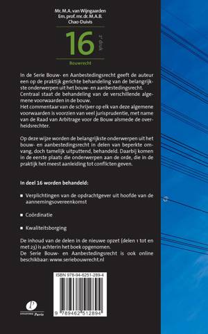 In de Serie Bouw- en Aanbestedingsrecht geeft de auteur een op de praktijk gerichte behandeling van de belangrijkste onderwerpen uit het bouw- en aanbestedingsrecht. Centraal staat de behandeling van de verschillende algemene voorwaarden in de bouw. Het commentaar van de schrijver op elk van deze algemene voorwaarden is voorzien van veel jurisprudentie, met name van de Raad van Arbitrage voor de Bouw alsmede de overheidsrechter.
