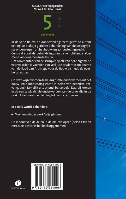 In de Serie Bouw- en Aanbestedingsrecht geeft de auteur een op de praktijk gerichte behandeling van de belangrijkste onderwerpen uit het bouw- en aanbestedingsrecht. Centraal staat de behandeling van de verschillende algemene voorwaarden in de bouw. Het commentaar van de schrijver op elk van deze algemene voorwaarden is voorzien van veel jurisprudentie, met name van de Raad van Arbitrage voor de Bouw alsmede de overheidsrechter. Op deze wijze worden de belangrijkste onderwerpen uit het bouw- en aanbestedingsrecht in delen van beperkte omvang, doch tamelijk uitputtend, behandeld. Daarbij komen in de eerste plaats die onderwerpen aan de orde, die in de praktijk het meest aanleiding tot conflicten geven.