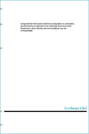 Jurisprudentie Financieel recht bevat uitspraken en annotaties geselecteerd voor gebruik in het onderwijs financieel recht. Daarnaast is deze selectie ook zeer bruikbaar voor de rechtspraktijk.